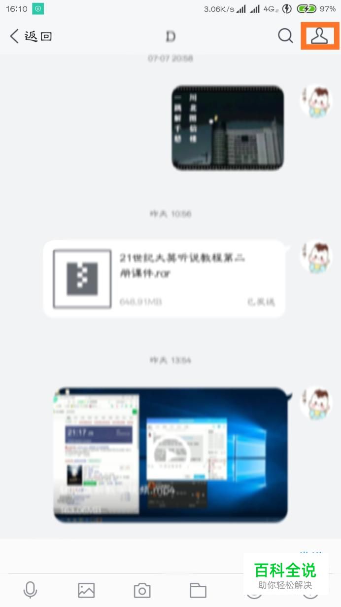 首先顺便找到一个好友打开聊天界面,然后点击一下右上角的设置齿轮。