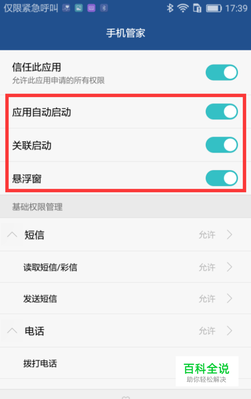 自启动——(手管如何设置开机自动运行); 关联启动——(用户在使用某一个软件的操作的过程中可以启动另一款软件,可以更好地节约系统资源和手机电量。)悬浮窗——(小火箭悬浮窗设置如何开启)、 创建桌面快捷方式路径引导——(极速清理、游戏盒子等快捷桌面图标显示设置) 在桌面找到华为自带的“手机管家”并打开,点击“权限管理”找到腾讯的“手机管家”,点击右边的按钮,开启信任此应用会允许创建桌面快捷方式、应用自动启动、关联启动和悬浮窗。