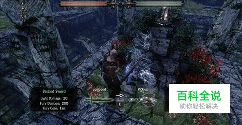 到周围找个有火的地方按E让女主过去把箭点燃,然后对着中间平台的火盆攻击,这样女主也会跟着做, 点燃火盆后会升起楼梯,来到中间的平台上后捡起这把斧子去下一个任务地。