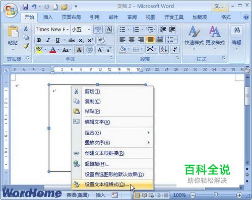 第1步,打开Word2007文档窗口,右键单击文本框,在打开的快捷菜单中选择“设置文本框格式”命令,如图2009010401所示。图2009010401 选择“设置文本框格式”命令
