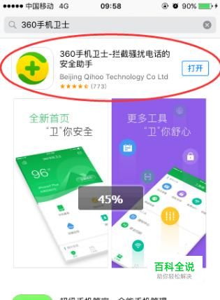 打开苹果手机,找到App Store,搜索”360手机卫士“并下载安装,如图所示。