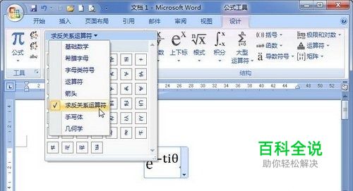 在Word2007公式中添加求反关系运算符