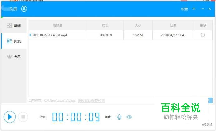 点击播放键就可以开始桌面录屏啦!录屏完成后可以在列表中找到你刚才录的视频的市场以及所在文件夹的位置。