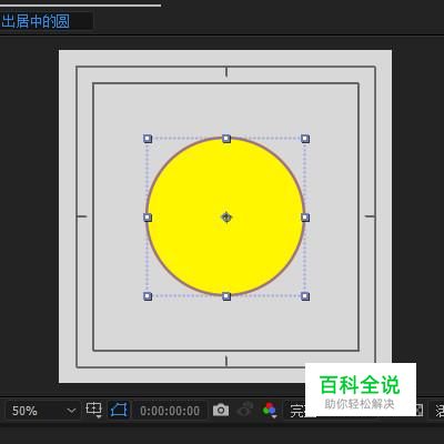 接着,调出椭圆工具,鼠标点住这个+字这里再拖拉一下,紧接着,左手按下键盘的CTRL+SHIFT;鼠标再拖动,这时,即拉出一个以+字为中心的圆。那么,一个居中于合成窗口的圆就画好了。接着鼠标再次点击“标题/动作安全”,即可把安全框给取消。