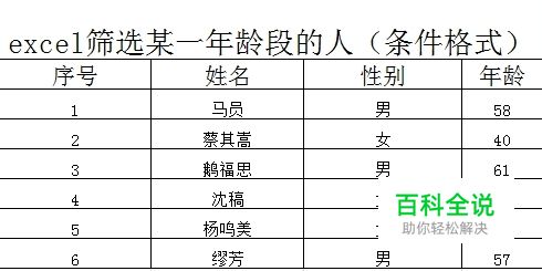 经常遇到一些表格里涉及不同年龄段的人,要比较明显的看出这些年龄对应的人,可以用excel中的条件格式进行筛选