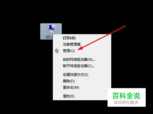 首先在在电脑桌面找到“教计算机”图标,点击右键选择“管理”进入。