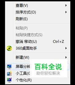如果显卡驱动是正常的,那以上情况就是显示器的分辨率没有调整到最佳造成的。我们在桌面的空白处右键单击,在弹出的菜单里点击“屏幕分辨率”。