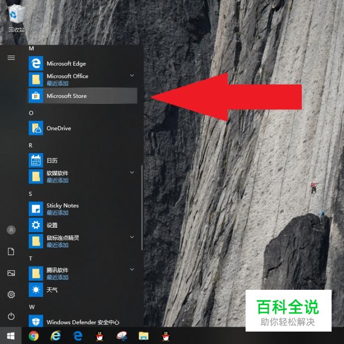 弹出菜单栏后,找到“Microsoft store”,点击进入。