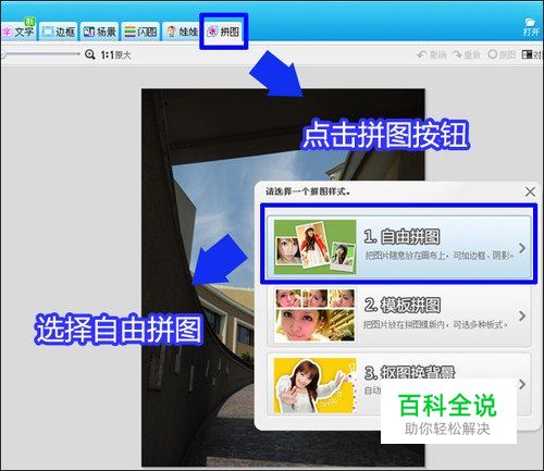 在软件下打开一张照片,进入“拼图”菜单下。使用模版拼图制作会相对简单,不过想创意就选择自由拼图,会让你的图片更具DIY的乐趣哦。