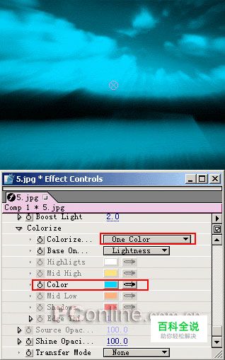 我们选择Colorize为None模式,此时光线的颜色为原图的颜色 如果选择One Color(单一颜色)模式,此时候的光线颜色为一种颜色,我们可以通过调整Color参数的颜色就可以改变图中的光线颜色 如果选择3-Color Gradient(三色渐变)模式,就可以调节Highlights高光、Mid High中间色和Shadows阴影的颜色 如果选择5-Color Gradient(五色渐变)模式,则可以调节五种颜色:Hightligts高光、Mid High中间高光、Midtones中间色、Mid Low中间阴影、Shadows阴影等 。