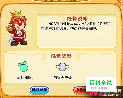神秘湖的码头已经张开了抵御杰拉德进攻的结界,快去看看吧。