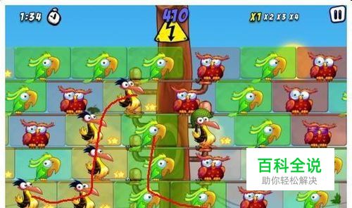 看到图中不二画出来的红线了吗,画技是渣了一些,可是不影响效果哈。小鸟控制者游戏不同于其他的消除类游戏,不一定只有直线或者折线才能够将其消除,并且也没有数量的限制,只要你能把屏幕上三只以上的小鸟连在一起,即可将他们消除。
