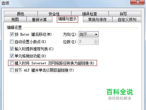 在编辑与显示标签,将键入时将Internet及网络路径转换为超链接(R)前面的钩去掉。