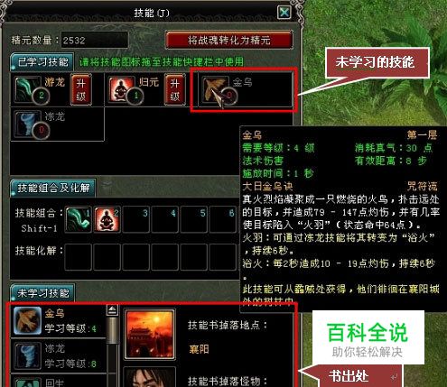 打开技能页面(快捷键:J),可查看当前未学习的技能和技能书的出处。