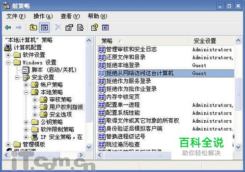 2.开始-运行-gpedit.msc-计算机配置-WINDOWS设置-安全设置-本地策略-用户权限指派-双击“拒绝从网络访问这台计算机”-选中“GUEST”-删除-确定