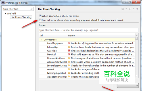 打开Preferences对话框:单击“Android Lint Preferences-Configure Workspace Settings”.