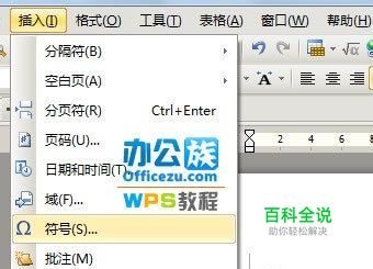 打开WPS文字,输入任意一个带有该偏旁的汉字,选中该字,点击菜单栏--插入--符号。