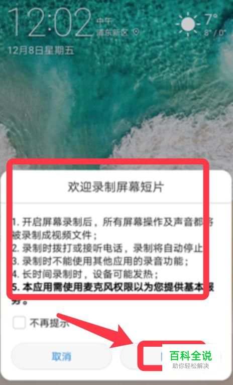 然后屏幕上会出现录屏的注意事项,点击同意就可以了.