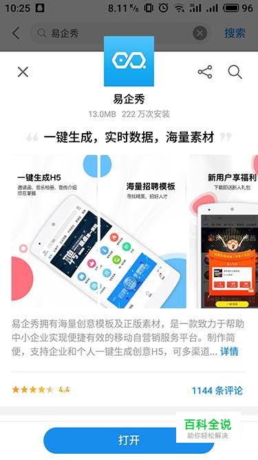 要想制作H5招聘海报的话,在应用市场上搜索“易企秀”下载安装。