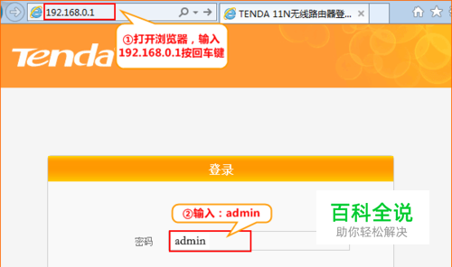 在浏览器中输入:192.168.0.1 按回车键,在跳转的页面中输入密码 admin 点击“确定”