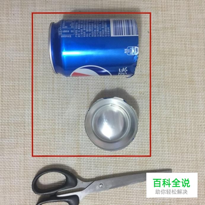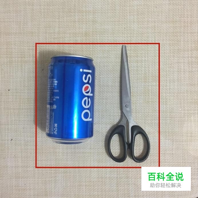 首先我们要准备一个易拉罐和一把剪刀,如下图所示。