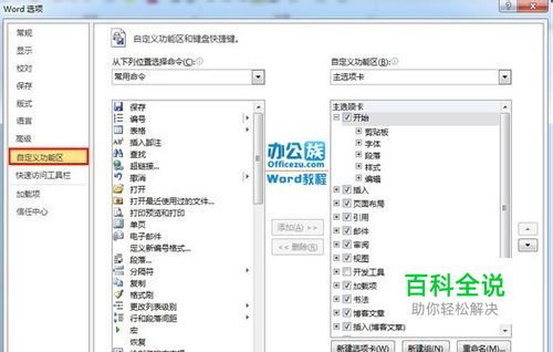 弹出“Word选项”窗口,点击“自定义功能区”,选择“自定义”。