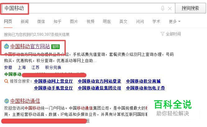 首先,我们点击打开我们电脑上面的浏览器,然后在搜索引擎中输入中国移动,并进行搜索一下,然后我们点击官网;