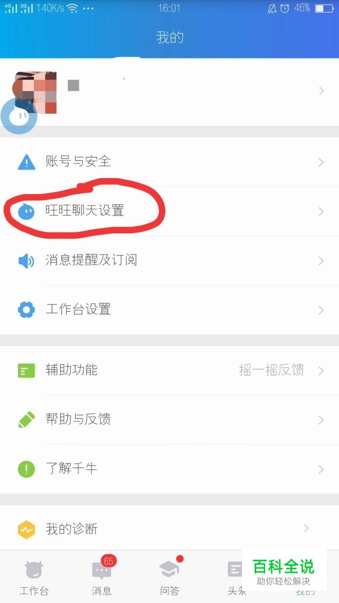 登陆账号之后,找到我的个人中心,选择“旺旺聊天设置”。