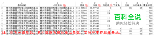 步骤一 创建基站扇区图层的关键参数主要包括小区名称及其对应的经纬度和方位角等数据,方位角数据控制扇区的覆盖方向,波瓣角大小控制扇区水平伸张范围,覆盖半径数据控制扇区的覆盖距离。具体格式如下所示: