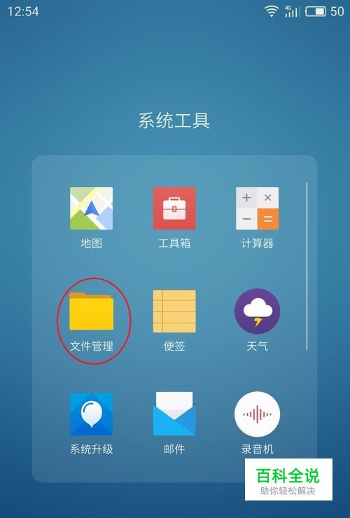 Android手机连接WiFi,打开手机自带的“文件管理”功能;