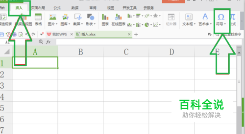 第二:在新建的Excel文件的菜单栏选择“插入”,再选“符号”