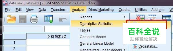 依次打开菜单:analyse--descriptive statistics--frequencies,打开描述性统计