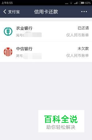 首先手机下载支付宝软件,并在【信用卡还款】中添加信用卡账户,如图已添加两张信用卡: