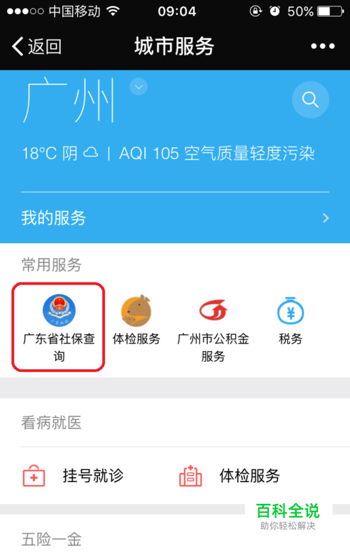 再次进入城市服务界面。点击“广东省社保查询”,如图。
