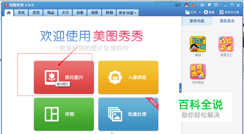 首先,我们需要下载美图秀秀pc端版,如果已经安装好,直接打开进入操作页面,点击美化图片。