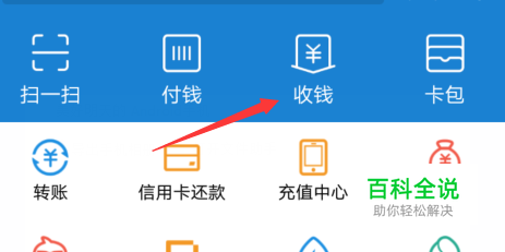 首先,打开手机安装好了的支付宝,进行登陆,如图所示,在上方找到【收钱】,点击进入下一步。