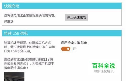 我们还可以打开快速充电,减少充电所需要的时间,也可以把usb持续供电关闭,如果你用不到的话。