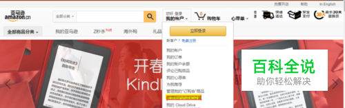 登陆亚马逊官方网站并登录,点击右上方我的账户倒三角,选择管理我的内容和设备。