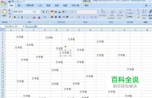 打开带有文本框的Excel表格文件,数量比较多,有的文本框还没有显示文字内容,(拖动也无法选择完)一个一个很难删完,如图: