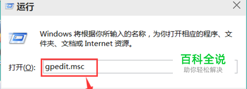 使用快捷键WIN键+R键,打开运行窗口,输入gpedit.msc,点击确认。