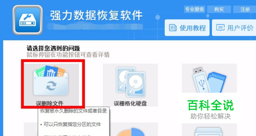 在操作界面中选择相应的恢复功能,永久删除的文件用户可以选择“误删除文件恢复”进行接下来的恢复工作。