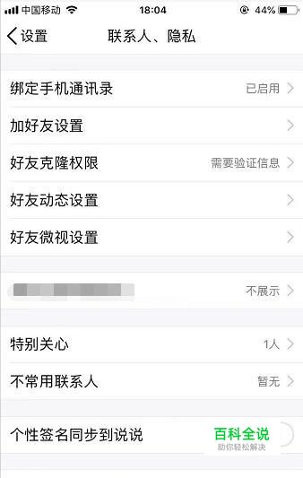 然后在 联系人、隐私页面就可以看到有个 好友动态设置,如下图