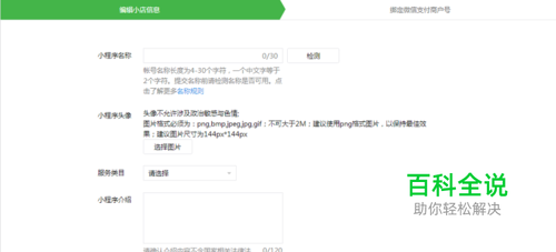 先编辑小店信息,包括小程序名称、小程序头像、服务类目、小程序介绍。