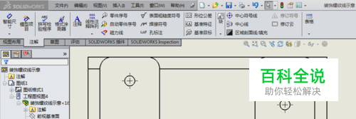 如果重启也不能解决问题,可以试试在装配体界面将该螺纹孔特征删除,然后重新插入该螺纹孔特征,或许工程图中对应的装饰螺纹线就出现了。