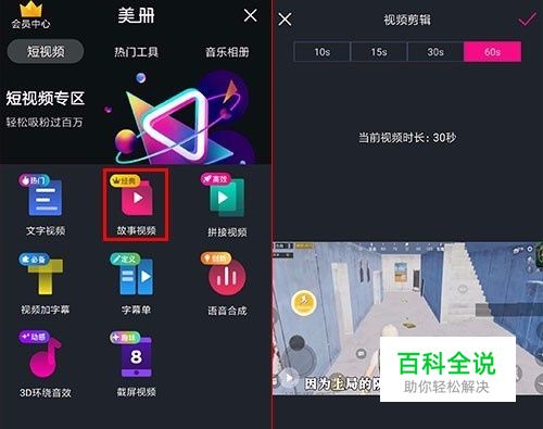 “故事视频”功能,可以制作快手热门视频加上描述之类文字的效果,将视频用这种形式做成一个系列,可以实现持续输出,吸引同类爱好的用户的关注。 首先在功能内导入视频素材,素材如果有水印,可以使用美册的视频去水印功能进行去除,导入后,在页面底部可以对视频进行快速裁剪,编辑好点击对勾。