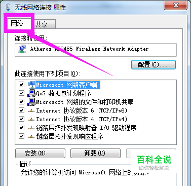 由于小编电脑现在是连接无线wifi上的网,所以在“网络和共享中心”的界面上,需要点的是“无线网络连接”。如果小伙伴们的电脑是直接拨号上网的,就在那里点"宽带连接“。