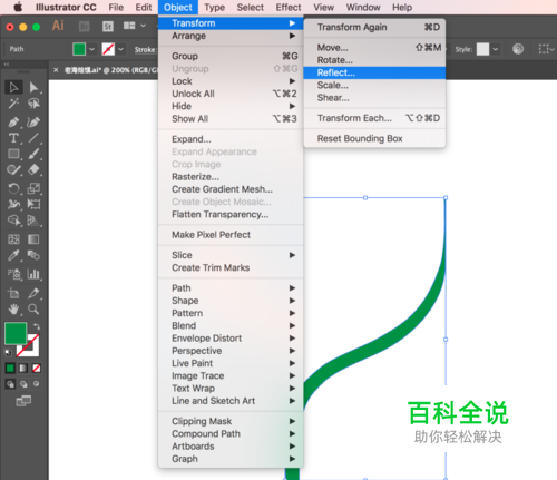 选中图形并依次选择菜单栏的: 对象(Object) -变换(Transfrom) --对称(Reflect)