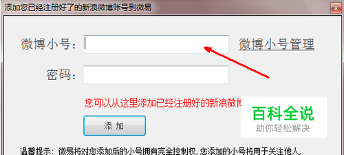 登陆软件之后,我们要添加一个微博账号,你添加你常用的账号就可以了,在空白框中输入账号和密码。