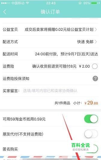 打开手机淘宝,选好宝贝确认订单信息后 提交订单