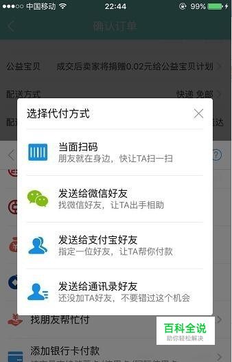 页面转到选择付款方式,然后选择 找朋友帮忙付